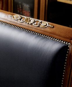 Стул с обитыми подлокотниками, сидением и спинкой. Декорирован резьбой. Возможны другие варианты отделки и обивки.