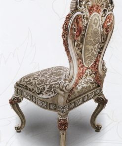 Стул с мягким сидением и спинкой, декорирован резьбой. Возможны другие варианты отделки и обивки
