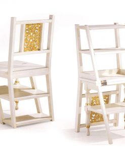 Стул трансформер, жесткие сидение и спинка. Стул трансформируется в лестницу. Декорирован резными элементами ручной работы. Возможны различные варианты отделки.