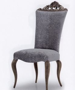 Стул с обитыми сидением и обитой в технике капитоне спинкой. Декорирован резьбой. Возможны другие варианты отделки и обивки, в том числе в ткани клиента.
