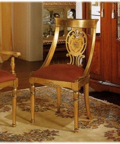 Стул, декорированный резьбой. Обивка — ткань, наполнение — полиуретан. Возможны другие варианты отделки и обивки. Возможен заказ только четного количества стульев