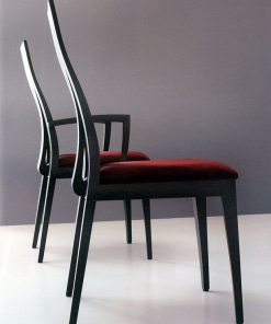 Стул с высокой жесткой спинкой, мягкое сидение. Возможен вариант стула с подлокотниками. Наполнение — полиуретан. Возможны другие варианты отделки и обивки.