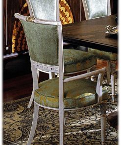 Стул с подлокотниками, мягкие сидение и спинка, жесткие подлокотники. Наполнение — полиуретан. Возможны другие варианты обивки и отделки.