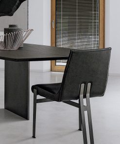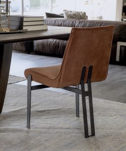 Стул с обитыми сидением и спинкой. Ножки выполнены из металла. Возможные отделки: коричневый, титан или латунь. Возможны другие варианты обивки, в том числе в ткани клиента. Дизайн Мауро Липпарини.