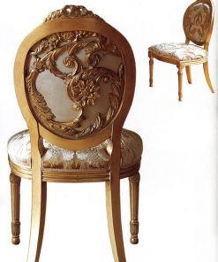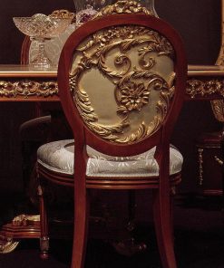 Стул, мягкие сидение и спинка. Наполнение — полиуретан. Декорирован резными элементами. Возможны другие варианты отделки и обивки.