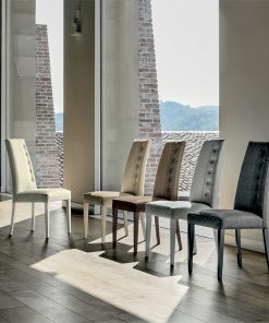 Стул с обитой в технике капитоне спинкой и мягким сидением. Возможны другие варианты отделки и обивки.