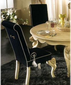 Стул, мягкие сидение и спинка. Декоративные розочки выполнены из пенополиуретана. Наполнение — полиуреатан. Возможны другие варианты отделки и обивки.