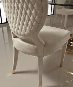 Стул в мягкой обивке. Декорирован стёганой прошивкой на спинке и металлическими накладками на ножках. Наполнение: полиуретан. Возможны другие варианты отделки и обивки. Возможен заказ только чётного количества стульев