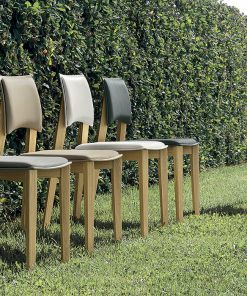 Стул с обитыми сидением и спинкой. Возможны другие варианты отделки и обивки.