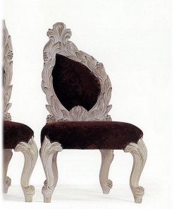 Стул, декорированный резьбой. Наполнение — полиуретан. Возможны другие варианты отделки и обивки, в том числе выполнение в ткани клиента. Возможен вариант стула с правой или левой асимметрией