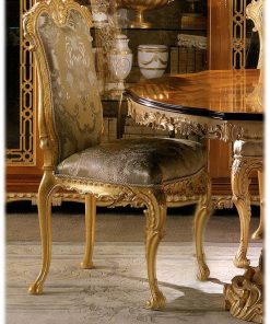 Стул, мягкие сидение и спинка. Возможен вариант стула с подлокотниками. Наполнение — полиуретан. Декорирован резьбой ручной работы. Возможны другие варианты обивки.