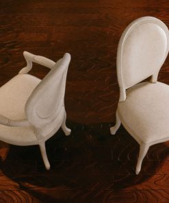 Стул, мягкие сидение и спинка. Каркас стула полностью обит тканью. Возможен вариант стула с подлокотниками. Наполнение — полиуретан. Возможны другие варианты обивки.