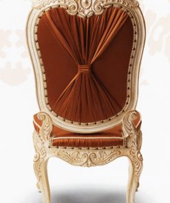 Стул с мягким сидением и спинкой, обитой в технике капитоне. Декорирован резьбой. Возможны другие варианты отделки и обивки