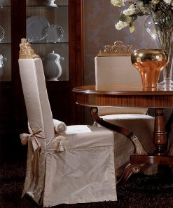 Обитый стул. Декорирован резьбой. Возможны другие варианты отделки и обивки, в том числе в ткани клиента.