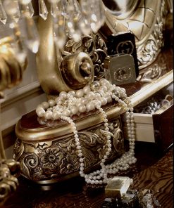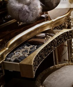 Туалетный столик с 9 выдвижными ящиками. Декорирован инкрустацией и резьбой. Зеркало заказывается дополнительно.