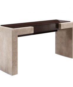 Туалетный столик с двумя выдвижными ящиками и откидной столешницей с внутренним зеркалом. Основание выполнено из металла. Каркас обтянут кожей. Возможен вариант столика без ящиков. Возможны другие варианты отделки и обивки