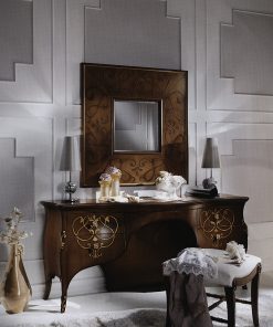 Туалетный столик с 4 выдвижными ящиками. Украшен резьбой и аппликацией. Возможны другие варианты отделки.