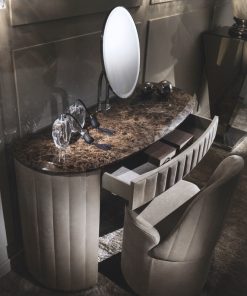 Туалетный столик с выдвижным ящиком и зеркалом. Основание выполнено из металла. Возможен вариант с мраморной столешницей. Возможны другие варианты отделки и обивки