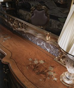 Туалетный столик с 9 выдвижными ящиками. Декорирован росписью и резьбой. Возможны другие варианты отделки.