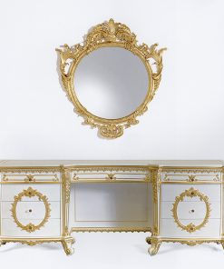 Туалетный столик с 9 выдвижными ящиками. Декорирован резьбой. Возможны другие варианты отделки.
