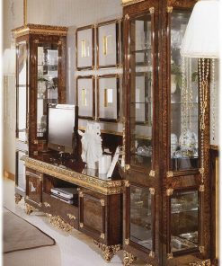 2-х дверная тумба под TV с 1-м ящиком и нишей. Декорирована резными элементами ручной работы. Отделка — радика ясеня.