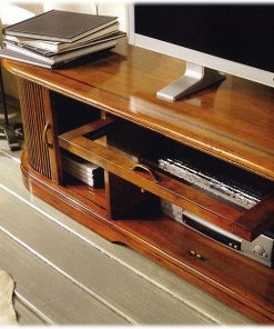 Тумба под TV с 2-мя раздвижными дверцами и закрытой полкой со стеклянной дверцей задвигающейся наверх. Возможны другие варианты отделки: темный мед, темный рубин, перламутр, мокка и д.р.