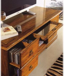 Тумба под TV с 2-мя ящиками под CD/DVD диски и закрытой полкой со стеклянной дверцей задвигающейся наверх. Возможны другие варианты отделки: темный мед, темный рубин, перламутр, мокка и д.р.