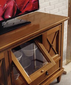 Тумба под TV с центральной раздвижной дверцей, двумя распашными дверцами и двумя ящиками с системой доводчиков. Возможен вариант с инкрустацией на столешнице и дверцах. Возможны другие варианты отделки.