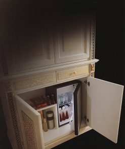 Тумба под TV с холодильником, 2 выдвижными ящиками и 2 распашными дверцами. Декорирована резьбой. Возможны другие варианты отделки.