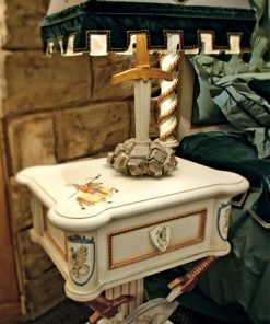 Прикроватная тумбочка с выдвижным ящиком. Декорирована росписью и резьбой