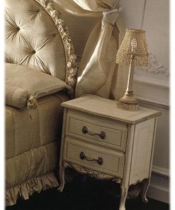 Тумбочка с 2-мя ящиками на высоких ножках. Декорирована резными элементами. Возможны другие варианты отделки.