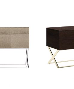 Удлинённая прикроватная тумбочка с двумя выдвижными ящиками. Основание выполнено из металла. Ящики с системой открывания push-pull. Возможны другие варианты отделки