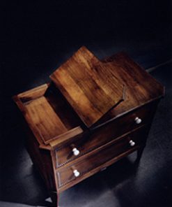 Тумбочка с двумя выдвижными ящиками и открываемым топом. Топ из ореха с античным эффектом, структура из ореха. Возможны другие варианты отделки.