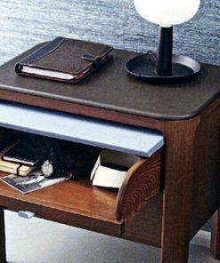Тумбочка с 1 ящиком, топ и откидная дверка обиты кожей. Возможны другие варианты отделки.