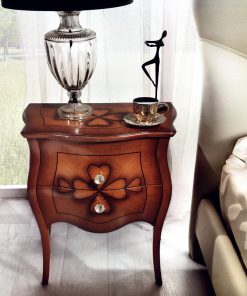 Прикроватная тумбочка с двумя выдвижными ящиками. Украшена инкрустацией. Возможны другие варианты отделки.