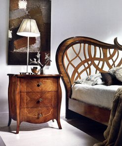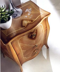 Прикроватная тумбочка с тремя выдвижными ящиками. Украшена инкрустацией. Возможны другие варианты отделки.
