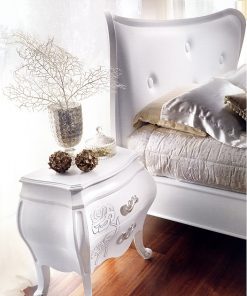 Прикроватная тумбочка с декоративной аппликацией и классическими ручками. Два выдвижных ящика. Возможен вариант с ручками Swarovski.
