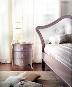 Прикроватная тумбочка с тремя выдвижными ящиками. Украшена декоративной аппликацией. Возможен другой вариант отделки.