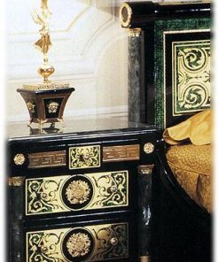 Тумбочка с 3-мя ящиками. Декоративные элементы из латуни и черного мрамора. Мраморный топ. Возможен вариант отделки в малахитовом цвете