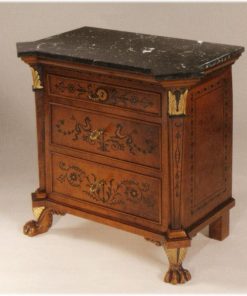 Тумбочка с 3-мя ящиками. Столешница выполнена из мрамора. Отделка — радика мирта с инкрустацией. Декорирован резными элементами ручной работы.