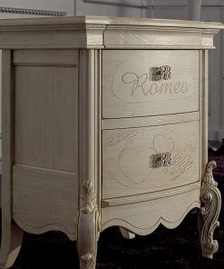 Прикроватная тумбочка с 3 выдвижными ящиками. Декорирована резьбой. Возможны другие варианты отделки.