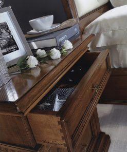 Прикроватная тумбочка с 3 выдвижными ящиками. Украшена инкрустацией.