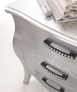 Тумбочка с 3-мя ящиками. Ручки и фасад декорированы кристаллами Swarovski. Возможны другие варианты отделки и ручек.