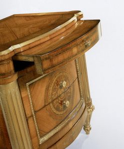 Прикроватная тумбочка с 3 выдвижными ящиками. Декорирована инкрустацией и резьбой. Возможны другие варианты отделки.