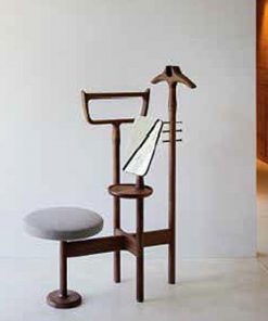 Вешалка из массива ореха с сидением и зеркалом. Возможны другие варианты отделки и обивки, в том числе в ткани клиента.