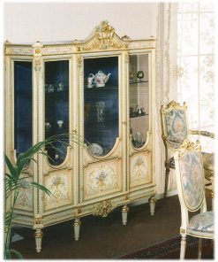 3-х дверная витрина, полки выполнены из стекла. Декорирована резными элементами. Возможны другие варианты отделки.