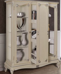 Витрина с 2 стеклянными распашными дверцами и выдвижным центральным элементом. Декорирована резьбой. Возможны другие варианты отделки.