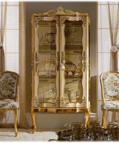 Витрина с 2-мя распашными дверцами. Декорирована резьбой и росписью ручной работы. Возможны другие варианты отделки