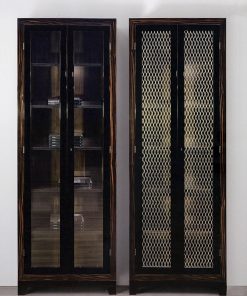 Витрина с 2 решетчатыми, стеклянными распашными дверцами с замком и 5 деревянными полками внутри. Возможны другие варианты отделки.