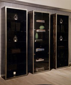 Витрина с 2 стеклянными распашными дверцами и 5 стеклянными полками внутри. Возможны другие варианты отделки.